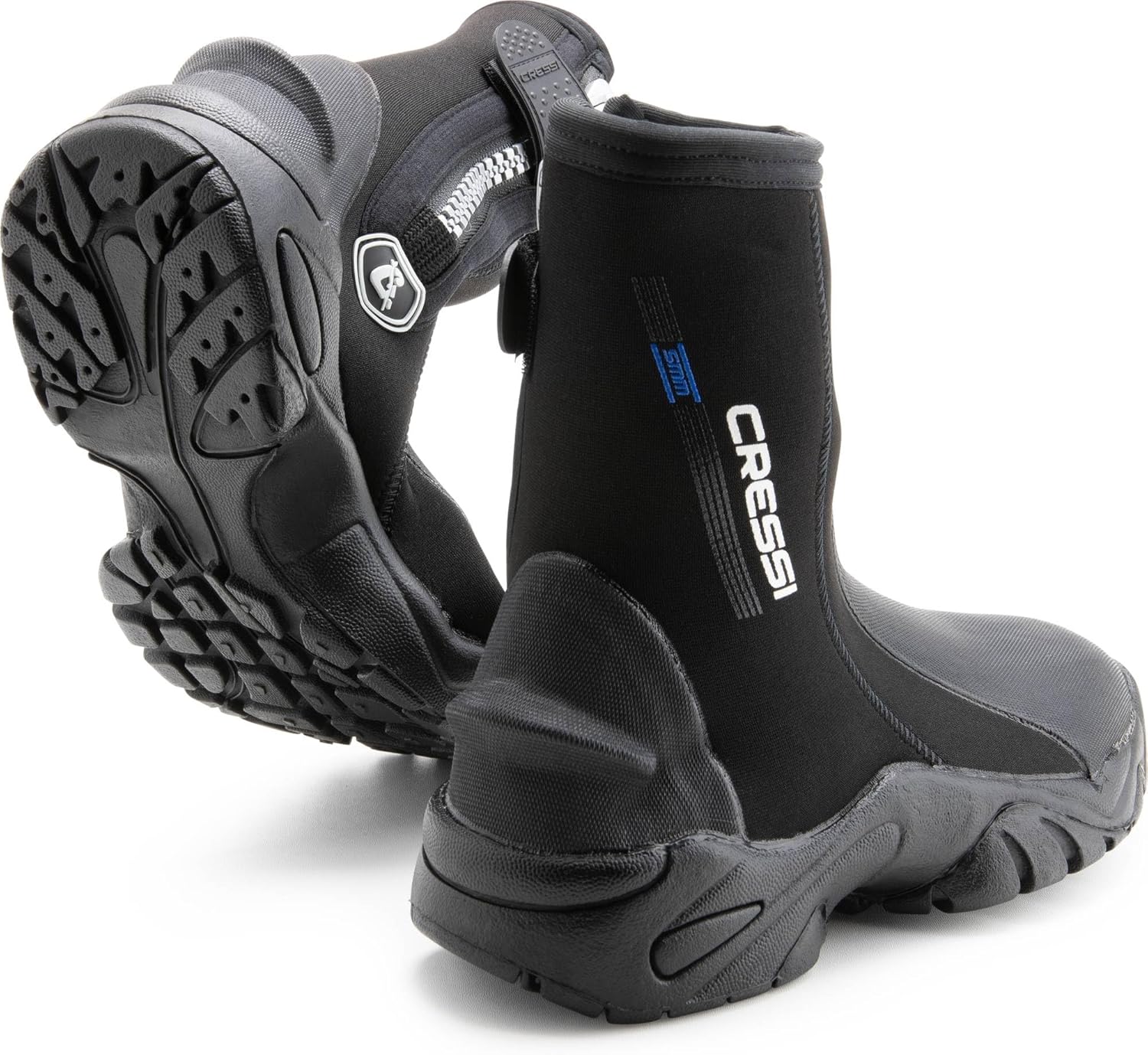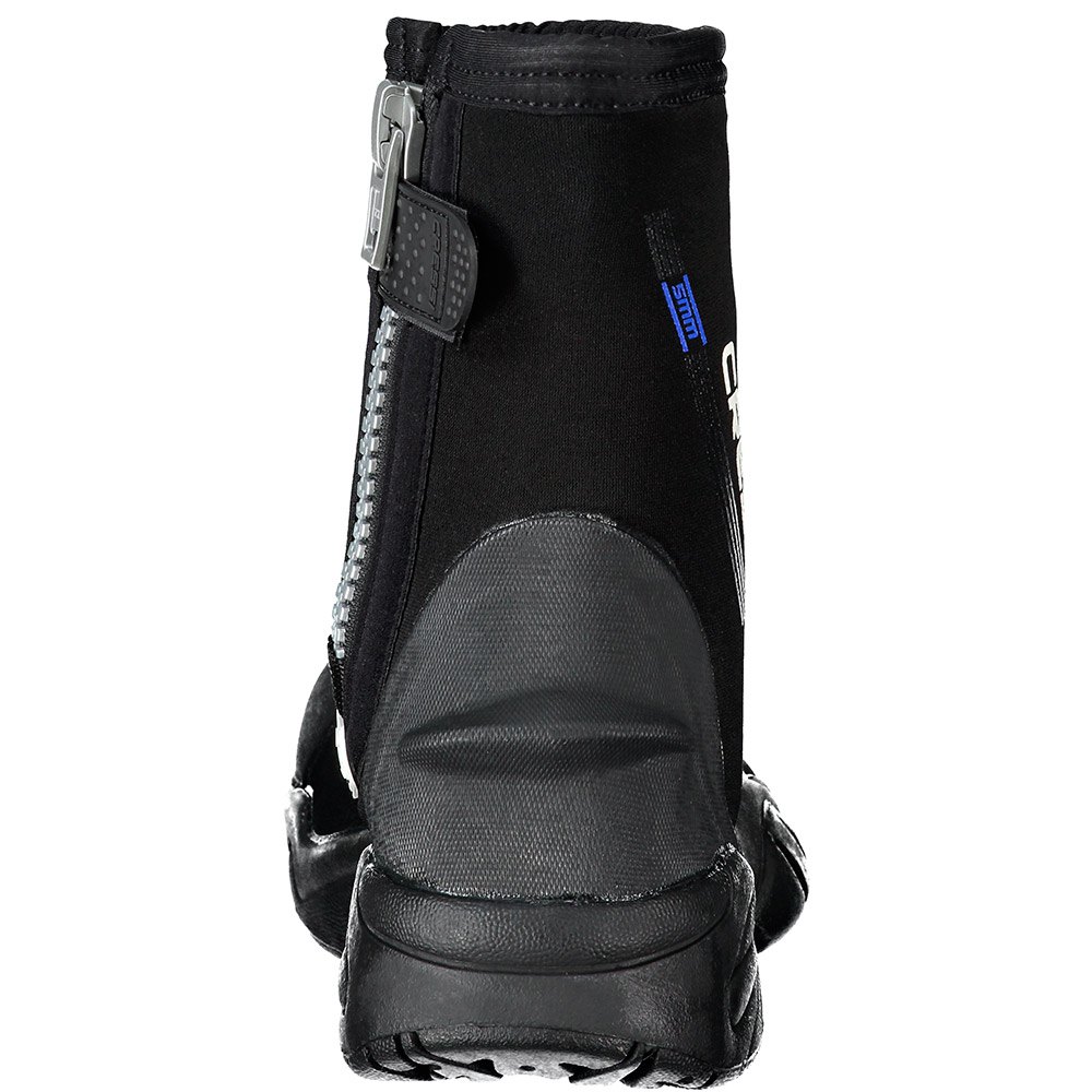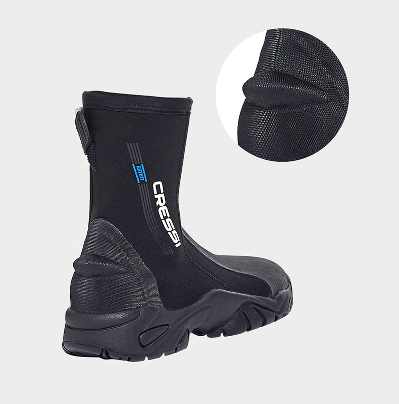 Këpucët e dizajnuara për t’u përdorur me lopata me thembra të hapura dhe për sporte të tjera ujore, janë prej neopreni të butë të veshur me najloni 5 mm, ideale për ujëra të ftohta. Mbrojtja e përforcuar nga PU për këmbët dhe thembra siguron rezistencë ndaj konsumit. Prerja për mbajtjen e rripit të lopatës është e integruar në thembër. Një zinxhir praktik YKK hapet në kyçin e këmbës për veshje të lehtë. Rrjedhja e ujit zvogëlohet në minimum falë një hidroizolimi të hollë mbrojtës nën zinxhir. Rripi i kyçit të personalizuar Cressi, ka një velcro në pjesën e brendshme. Një formim i ngurtë, jo i rrëshqitshëm dhe me kapje të lartë mbulon të gjithë tabanin.
