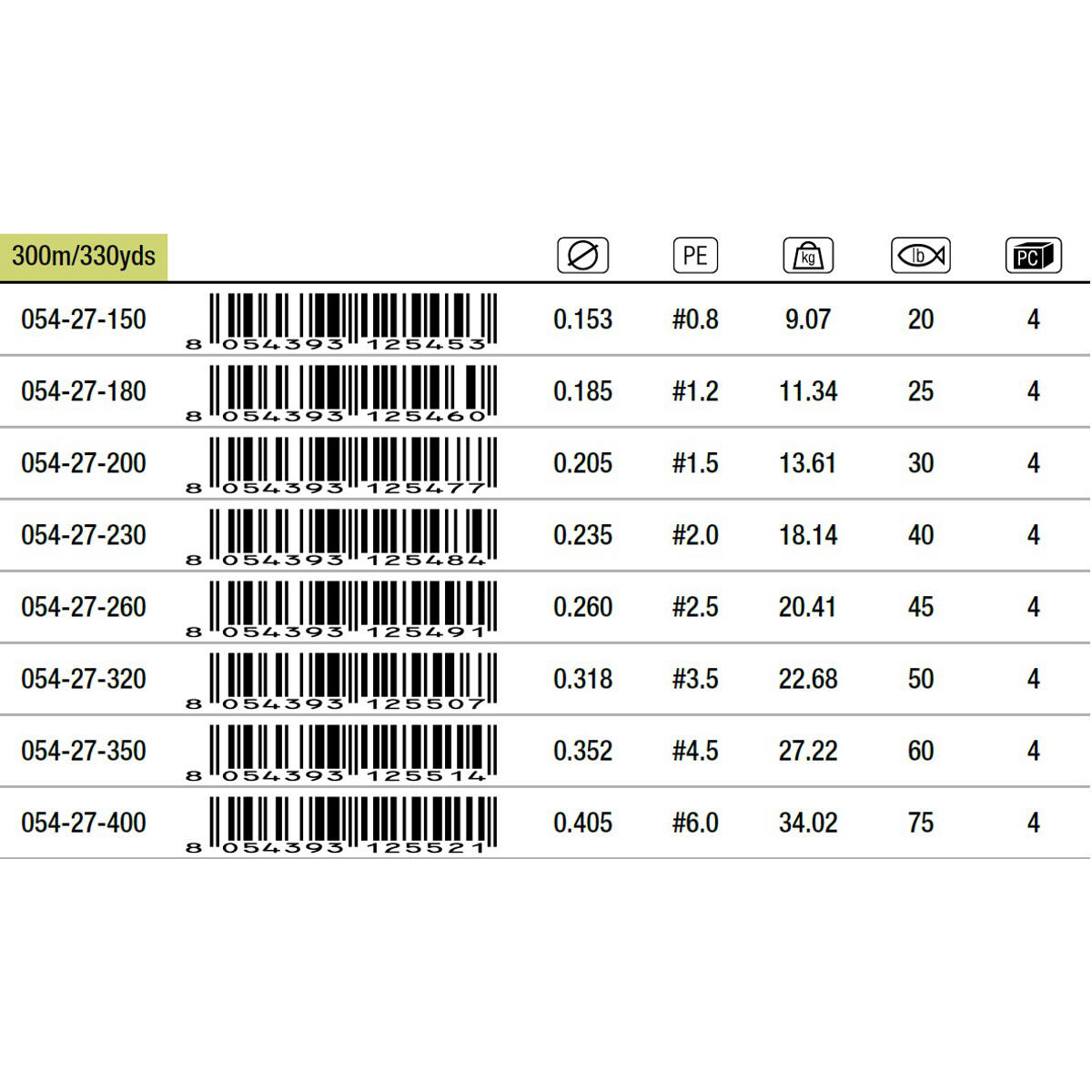 • Braid me 8 thurje i bërë nga fibra PE me modul të lartë, me seksion tërthore të rrumbullakët